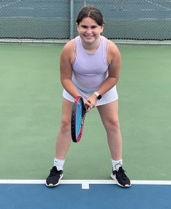 “I was getting too big for my racket,” said 11-year-old Olivia, who practices twice a week. “I show good sportsmanship by tapping rackets at the end of a match. It’s a way to say ‘good job’ to my opponent. Also, I don’t get mad if I lose.”