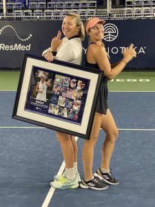 Krejcikova and Kenin, the latter being the 2020 Australian Open singles champion, both received Wild Cards into the main draw and impressed spectators with great play throughout the week. The final was a 2-hour and 38-minute epic battle before a full house of 2,500 fans on center court, who gasped and cheered for the two women tennis warriors. After clinching the singles title and a 30-minute break, Krejcikova and Siniakova added another doubles title to their impressive resume. This pair previously secured a Golden Slam plus captured Olympic Gold. They won the Australian Open (2023), Wimbledon (2018), Roland Garros (2018), and the US Open (2023). They also were victorious in the Tokyo Olympics (2022). They’re the second women’s doubles team ever to complete a Career Golden Slam, after the Williams sisters, and are one of the best teams on the Hologic WTA Tour.